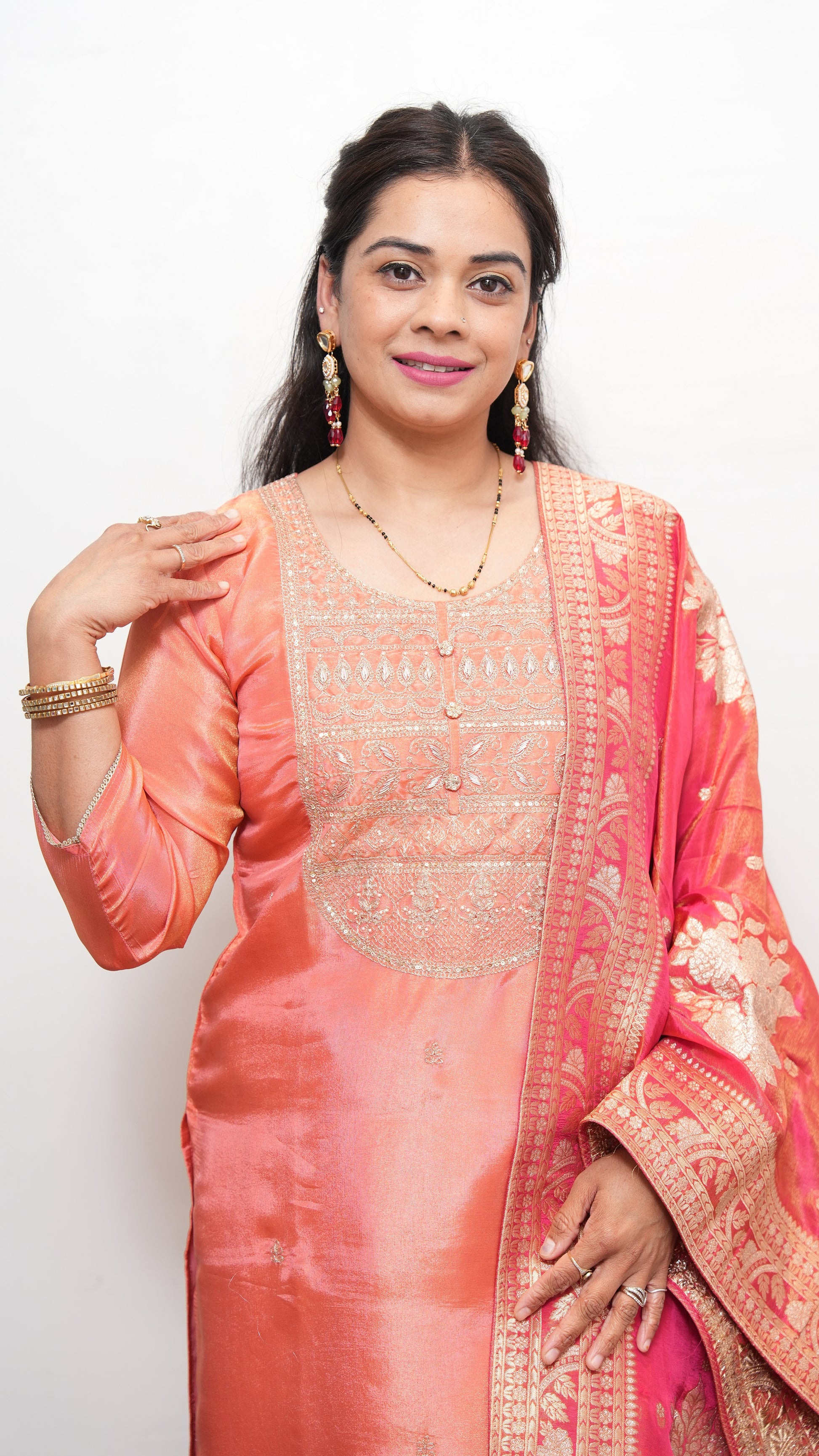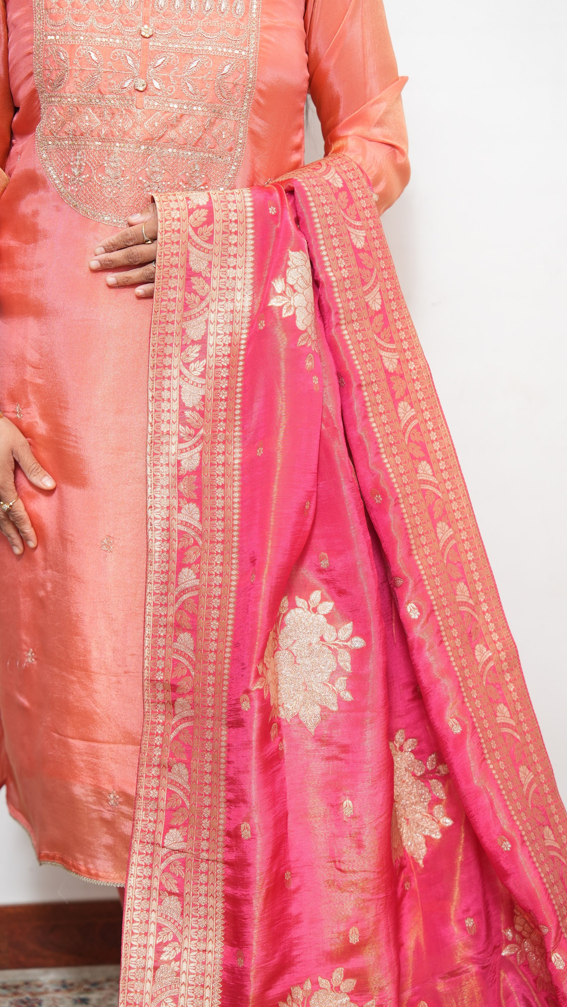 "NOOR" - Peach Suit Set with heavy Dupatta